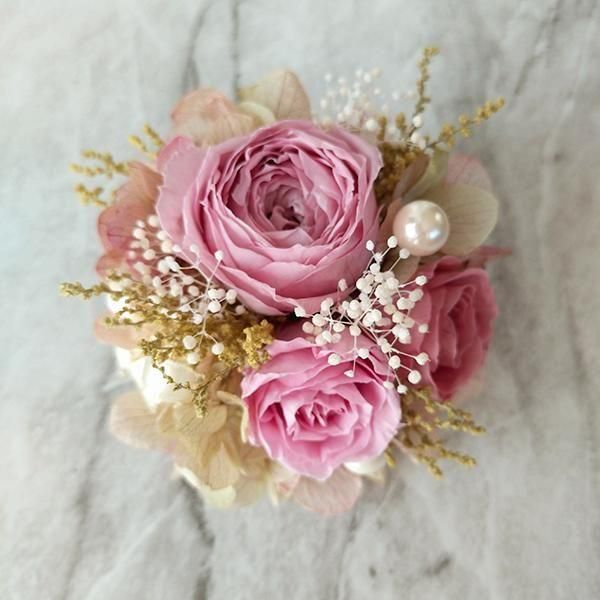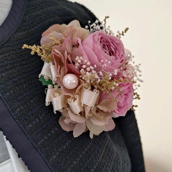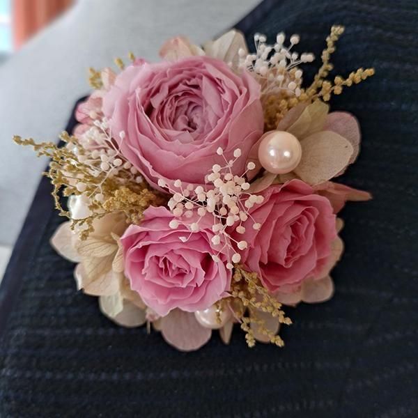 優しくエレガントな印象を与えるプリザーブドフラワーのコサージュが登場しました。